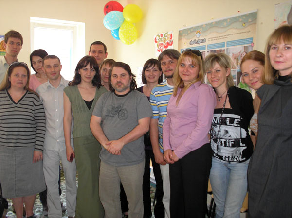 Александр Гезалов (в центре) и сотрудники фондов "Счастливый ребёнок" и "Колыбель надежды". 19 мая 2011, г. Днепропетровск