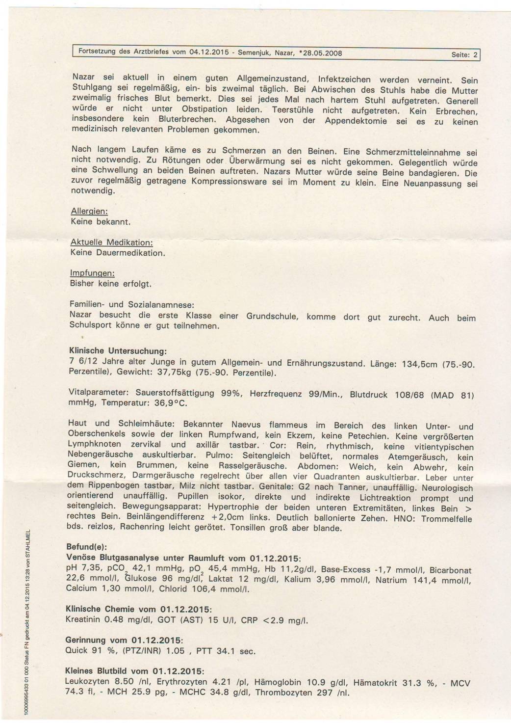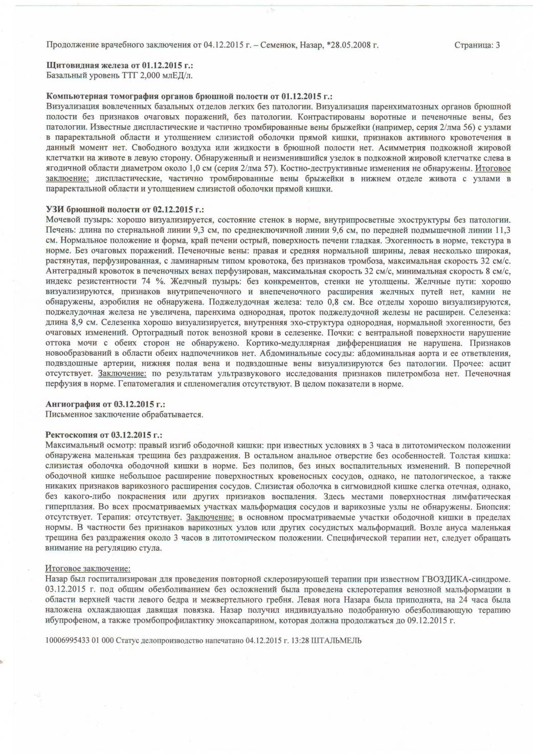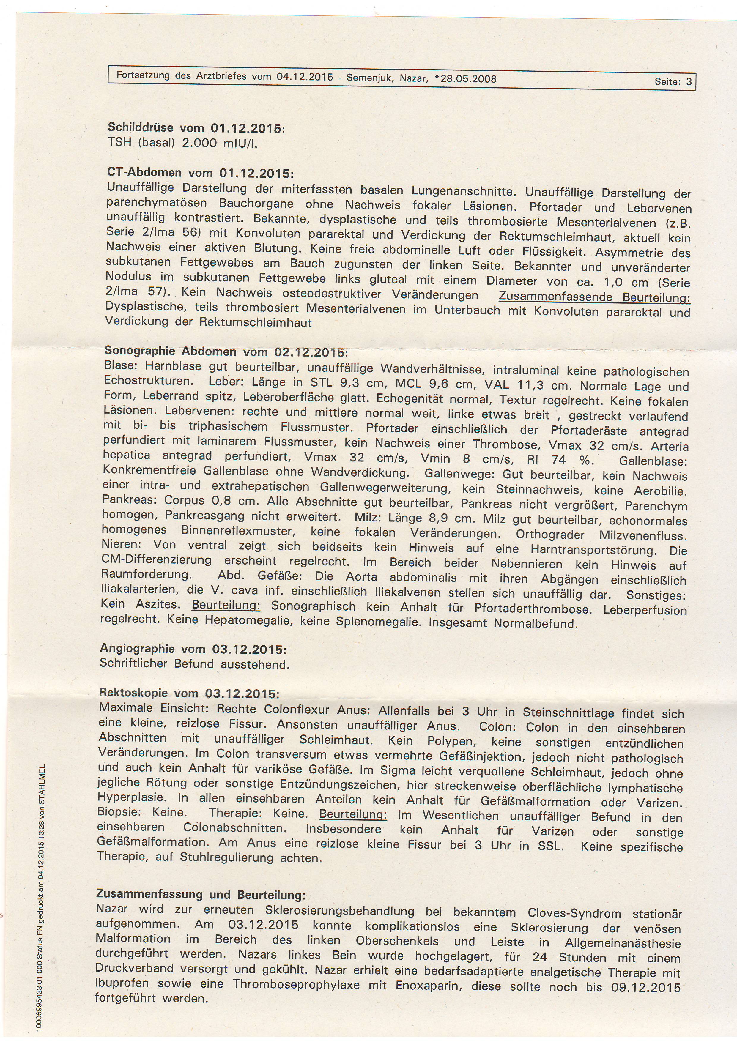 В январе 2013 года Назар прошел обследование, курс лимфодренажного массажа и бандажирования в немецкой клинике Фелди. Так же был проведен курс склерозирования. Так длится вот уже 6 года…