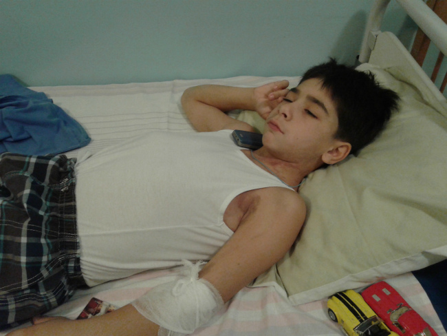 Она вылетела с ребенком в Москву в РДКБ. Там Назару немного помогли - он перестал терять кровь, но все же иногда кровотечения повторялись. Затем благодаря помощи многих фондов Елена и Назар уехали в Германию, в город Гамбург и проблему кровотечений удалось решить. Но основная проблема осталась и она грозила потерей ножки.
