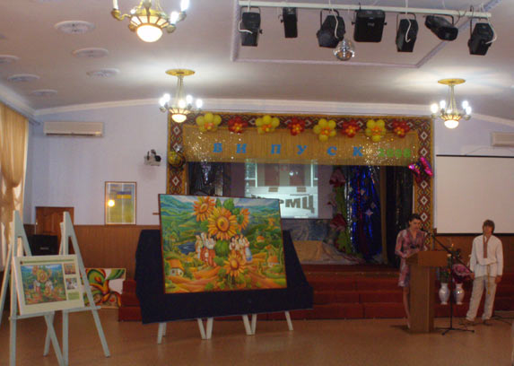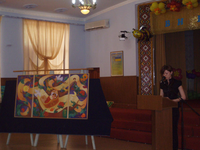 Дуже запам'яталось чудове оформлення захисту: на великий екран проектувались тематичні кадри по сюжету робіт, які ілюструвались українськими піснями, віршами, а також живописними краєвидами нашої батьківщини. Враховуючи, що серед присутніх на цьому заході були люди, які погано чують, тексти захисту дипломних робіт також проектувалися на екран.