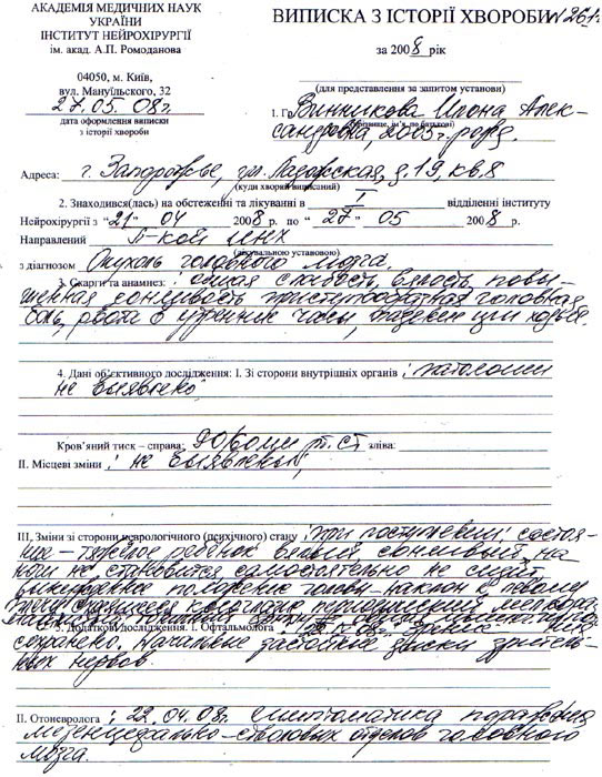 Илона росла веселым любознательным ребенком, как все дети радовалась жизни, природе, игрушкам. Но несколько месяцев назад в семью пришла беда - резко ухудшилось самочувствие Илоны. Приступообразная головная боль, рвота, падения при ходьбе... Обследование показало: Опухоль задних отделов 3-го желудочка головного мозга. В тяжелом состоянии ребенок поступил в Институт нейрохирургии в Киеве, где было проведено частичное удаление опухоли. По данным биопсии опухоль является анапластической астроцитомой.