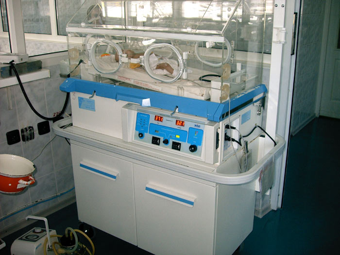 - Кувезы (инкубаторы для новорождённых) с двойными стенками и системой контроля климата для выхаживания недоношенных маловесных новорожденных ("Cute Baby Care" производство фирмы "Atom", Япония);