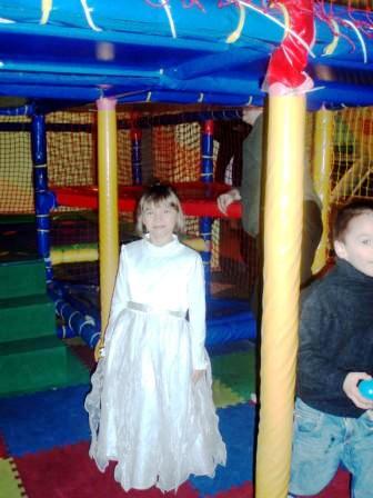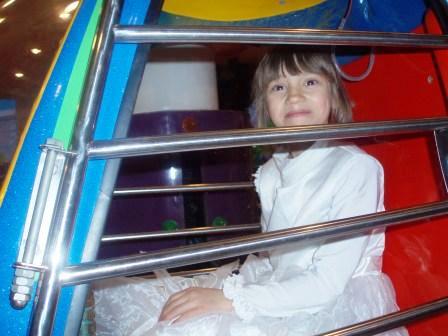 Им предстояло выбрать из многих искушений несколько: то ли прокатиться на скаковой лошади, то ли выиграть в «Формулу-1», то ли еще что. Малышам был бесплатно предоставлен многоярусный куб для лазанья и батут. Я постепенно превратилась в новогоднюю елку, только вместо игрушек дети повесили на меня свою одежду. Было очень приятно слышать детский смех, возгласы; видеть веселые раскрасневшиеся лица ребят, слушать потом их сбивчивые рассказы о том, что же происходило внутри. Не повезло только нашей принцессе Вике: облаченная в пышное платье, она сначала запуталась в нем, а потом была еще и сбита с ног мальчишками. Но все же в конце концов и она опять смеялась.