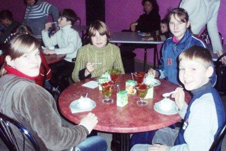 28.12.08 мы с Таней Рожненко повезли 16 воспитанников интерната № 3 в «Шекиленд». А до этого поиграли в самых настоящих Дедов Морозов: разведав тихонько у детей, что бы они хотели от Дедушки Мороза, мы купили каждому ребенку именно то, о чем он мечтал. А желания были самые разные: от робота-трансформера до блокнота с ручкой. Поразил альтруизм малышей: первые их заказы были «для всех», они говорили нам о том, что бы они хотели для класса, а не для себя лично. Но мы выполнили и часть этих заказов. Теперь у ребят есть своя собственная игра «Твистер», а у их учительницы есть цветные мелки для доски, а вот указку и кукольный театр мы, к сожалению, не купили.