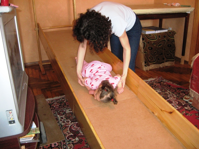 Также родители Машеньки хотели бы приобрести тренажер, специально разработанный для ребенка с поражением центральной нервной системы. Он помог бы Марийке научиться лучше координировать свои движения, развивать основные функции организма и т.д. Но вот только стоит такой тренажер около 400 долларов, и родители Машеньки также не могут себе позволить приобрести такое приспособление.