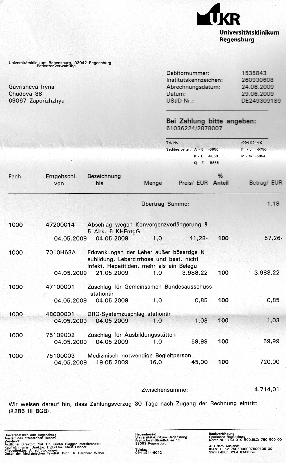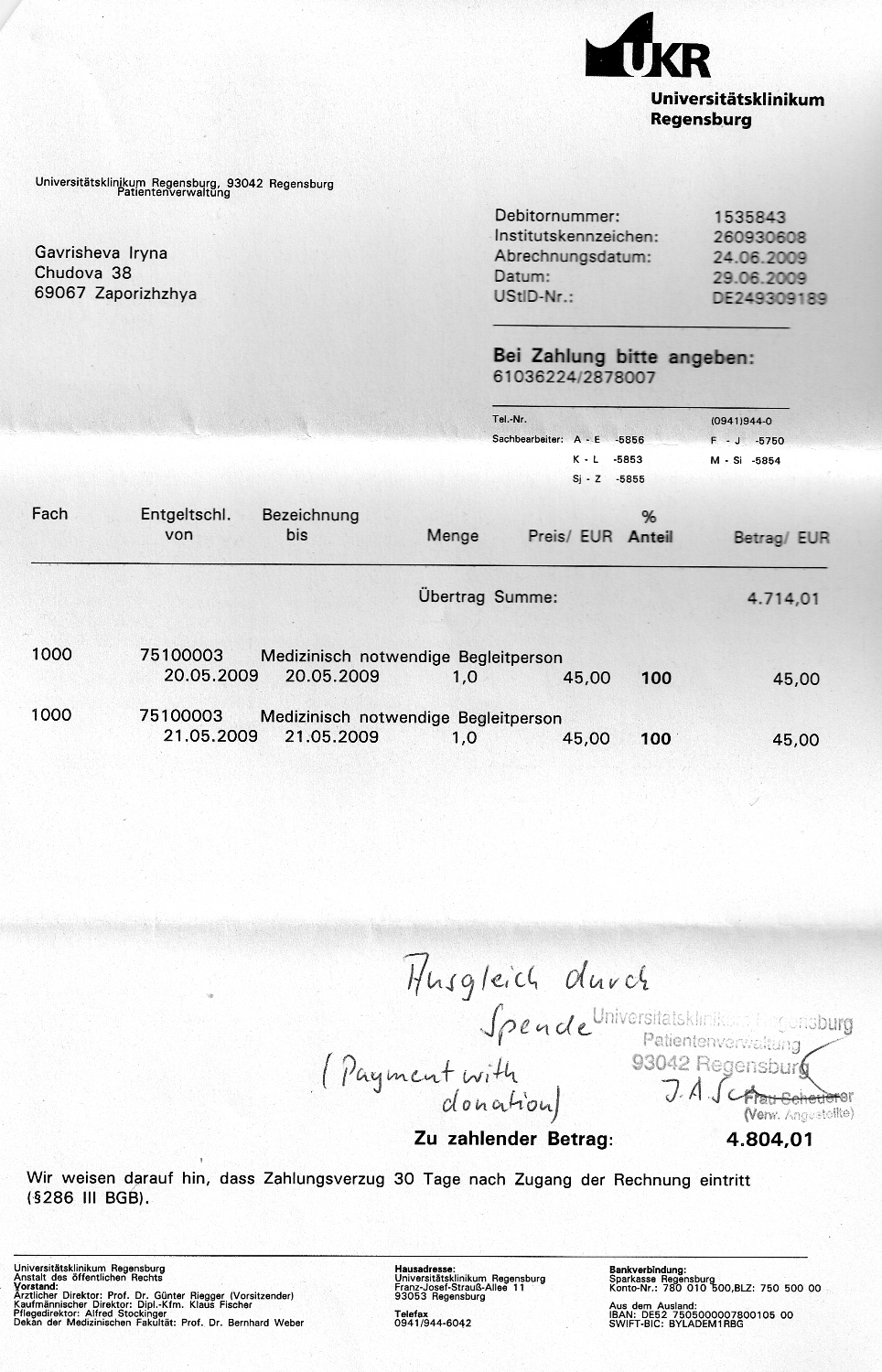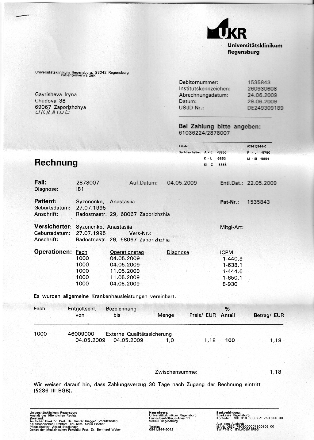 Счета из немецкой клиники, г.Регенсбург: Счет 1 Счёт 2 Счёт 3