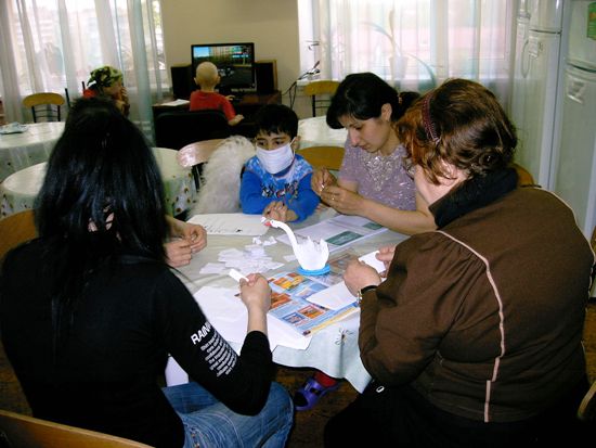 Дома компьютера нет - зато в отделении можно наиграться уже! А еще в гематологию приходят чудесные рукодельницы Тамара Александровна, Наталья и Анюта, которые делают с ребятами и их родителями замечательные необыкновенные поделки. Это - любимое занятие Игорька и, завидев кого-нибудь из мастериц у порога отделения, он первый бежит занимать место за столом!