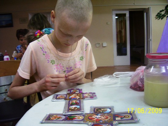 Теперь почти в каждой семье онкобольных детей появился крест с изображением Иисуса Христа, Божьей Матушки, святых. По мере выполнения работы Наталья, которая также ведет творческий кружок и в детской воскресной школе, рассказывает ребятам о Боге, о Библии, о жизни во Христе.