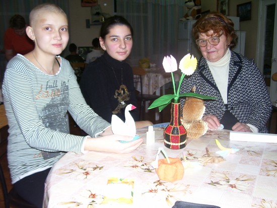 Одними из таких немногих счастливых моментов являются творческие уроки, которые проводят Тамара Александровна и Наталья, которые в качестве постоянных волонтеров приходят в отделение два раза в неделю и посвящают полтора - два часа занятиям с детками. При этом, что бы ни делали на этих уроках ребята – художественная роспись, лепка, оригами – все виды деятельности воспринимаются детьми (и их родителями тоже!) с огромным воодушевлением, а результаты труда бережно хранятся и увозятся домой как реликвии.