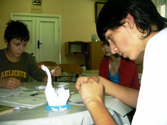А еще у детей на этих творческих занятиях происходит знакомство со многими видами искусства. Например, ребята впервые делали такие поделки как японские оригами, пробовали Петриковскую роспись, учились плести из бисера разные фигурки.
