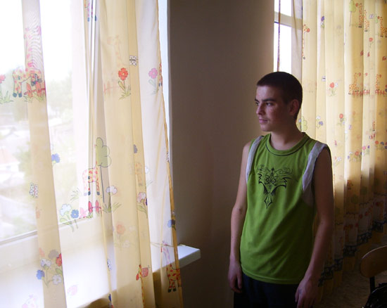 Мальчишка очень скучает в больнице. В Запорожье у него нет ни одного знакомого человека, никто не навещает его, не приносит вкусненького. Единственное развлечение – мобильный телефон да телевизор в холле отделения.