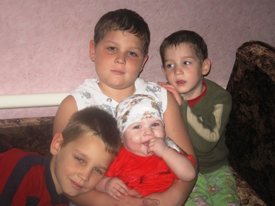 Кроме материальных пожертвований вы можете также оказать помощь, передав детскую одежду для мальчиков соответствующих возрастов (особенно зимнюю), а также – мечта мальчишек – компьютер (можно бывший в употреблении) для Руслана и Юлии, которая, воспитывая детей, смогла бы на компьютере выполнять какую-нибудь работу и тем самым также зарабатывать деньги для своей большой семьи.