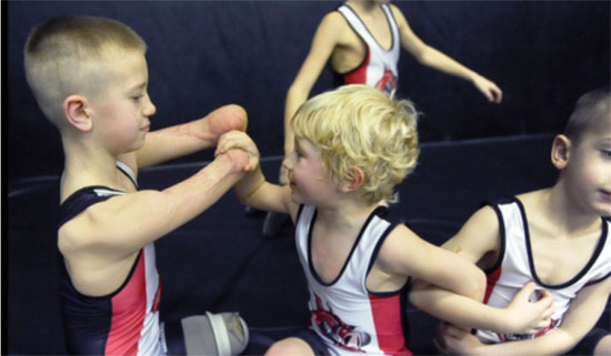 «Желание Дейтона учиться было большим плюсом», заметил Хорник. «Ему легко тренироваться». И его действительно не так уж просто уложить на лопатки, так как он сильный, проворный и очень старается выиграть. А это характеристики хорошего борца».Участники соревнований разделяются на весовые категории. Дейтон соревнуется в весовой категории 52-55 фунтов (24 – 25 кг), и очень часто его соперниками оказываются дети младше его. Дейтон практически ходит на все тренировки, что и его друзья из клуба. Когда те бегают, Дейтон поспевает за ними на культях.
