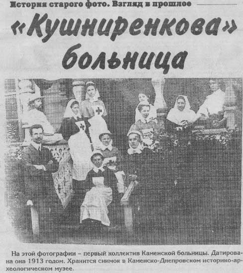 На этой фотографии – первый коллектив Каменской больницы. Датирована она 1913 годом. Хранится снимок в Каменско-Днепровском историко-археологическом музее.