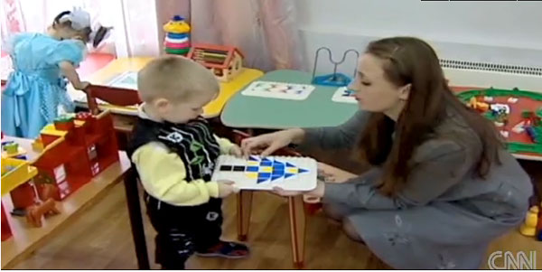 Москва, Россия (CNN) – Хотя Оксане уже 4 года, она намного ниже, чем детишки, которые на год ее младше. Она едва ли умеет говорить, однако, не раздумывая долго, взбирается на диванчик, забавная в своем мешковатом платьице, и, усевшись рядом с посетителем, дарит ему озорную улыбку.