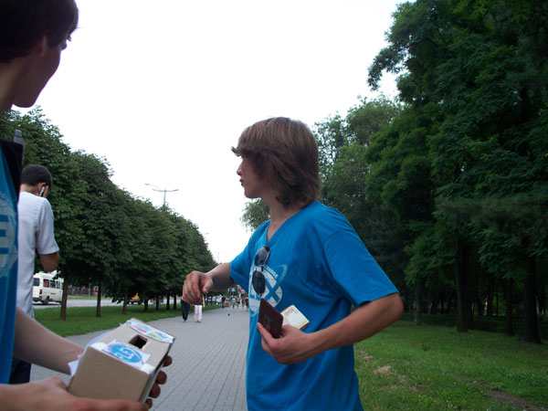 10 июля, прогуливаясь по проспекту от площади Фестивальной до площади Ленина, вы наверняка встречали молодых людей в футболках с логотипом благотворительного фонда «Счастливый ребёнок» и с коробками для пожертвований. 25 ребят вышли в этот жаркий день на улицы города с целью собрать средства на лечение больной лейкозом 16-летней Светланы Панасенко.