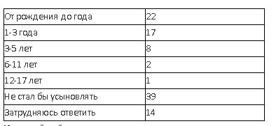 На то, чтобы стать родителями детей старше 12 лет, пошел бы только 1% опрошенных. При этом 39% респондентов ответили, что никогда не усыновили бы ребенка, а еще 14% было трудно дать ответ на этот вопрос.