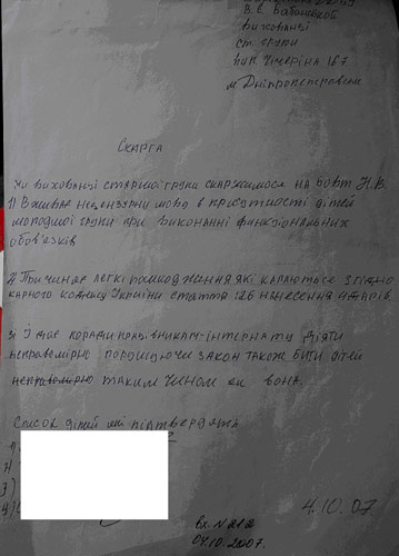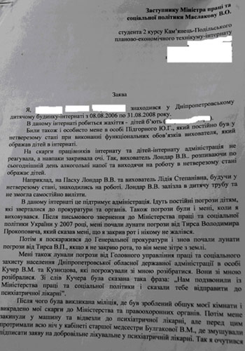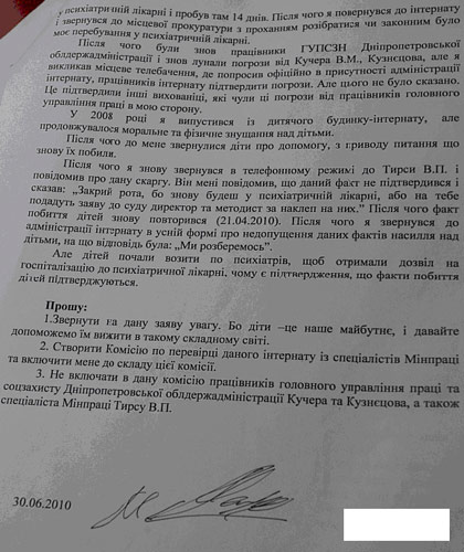 Контроль кадрів, що працюють з сиротами, практично відсутній. Ось такі заяви на своїх вихователів пишуть діти, втім, як правило, безрезультатно.