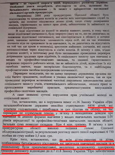 Витяг зі звіту прокуратури про перевірку закладів дошкільної освіти у Одеській області