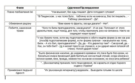 Правоохоронці ж займають вигідну позицію, яка характеризується: а) частковим визнанням свавілля у інтернатах; б) небажанням або нездатністю притягати посадових осіб до реальної відповідальності.