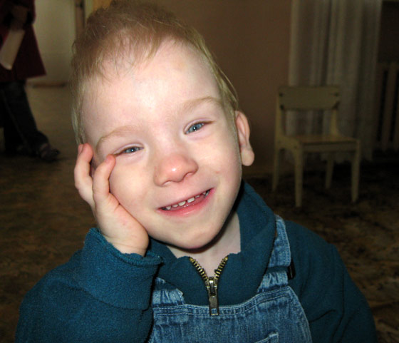 Девочка нежная и застенчивая. Она трогательно улыбается мне и старается вступить в контакт как умеет.