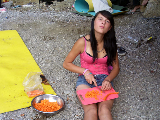 Новый день встретил нас ярким солнцем. Ребята с утра активно включились в работу. Девочки помогали готовить завтрак, мальчишки собирали дрова и разжигали огонь, мы были одной дружной командой. Искупавшись в удивительно красивой Чёрной речке, мы отправились по тропе в сторону посёлка Морозовка. Оттуда нас ждала долгая дорога к нашей следующей стоянке неподалёку от трассы на Ялту. Место было красивое, но огорчила пересохшая речка и слабый родник. Все наши ребята – творческие личности, и они сразу создали приспособление из бутылок для быстрого сбора воды. Устав от рюкзаков и дальней дороги, мы приготовили сытный ужин. Вечером у костра ребята вспоминали пройденный путь и мечтали о том, как они завтра увидят море.