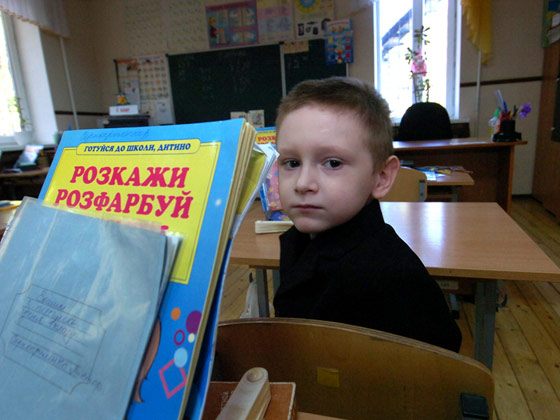 ...Шумные мальчишки обступили нас во дворе. А увидев в руках мешочек конфет, даже забыли об учителе физкультуры и веселых упражнениях. «Ты будешь с нами жить?» — визжит шестилетний Вадик, у которого только начали прорезываться новые зубы, и бросается обниматься. В классе малыши просят рассказать им что-то интересное, рассматривают книжечки. «А я летал с папой высоко-высоко!» — говорит непоседа Вадик, тыча пальцем в книжечке на самолет, и улыбается так, что в классе сразу становится светлее. Правда, ни самолета, ни отца малыш никогда не видел — в интернат он попал из детдома «Сонечко»... В подготовительном классе он такой один, других детей забирают на выходные после уроков домой родители. Или же... Обещали забирать. Есть малыши, которых привели первого сентября в интернат и о них словно забыли... Насупленный Вова сидит за партой и молчит, не реагируя ни на крики, ни на сладости и подарки, ни на учительницу. Лишь когда директор спрашивает: «Ты расстроился, что тебя не забрали на выходные?» — кивает головой. Учительница рассказывает, что эти дети не только еще не умеют читать-писать-считать, но и даже не различают цвета, формы, не знают времен года и других элементарных понятий. Все свидетельствует о том, что детьми дома не занимались. Но усваивают новые знания малыши довольно легко.