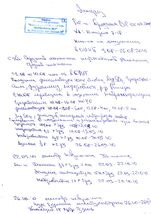 Выписка из истории болезни август 2010: 1 стр.; 2 стр.