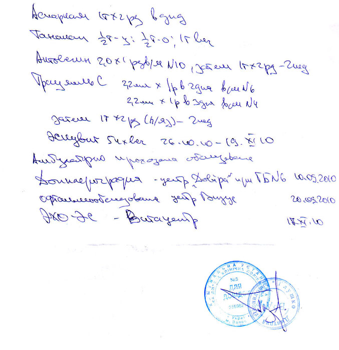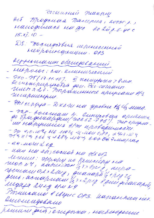 Выписка из истории болезни ноябрь 2010: 1 стр.; 2 стр.
