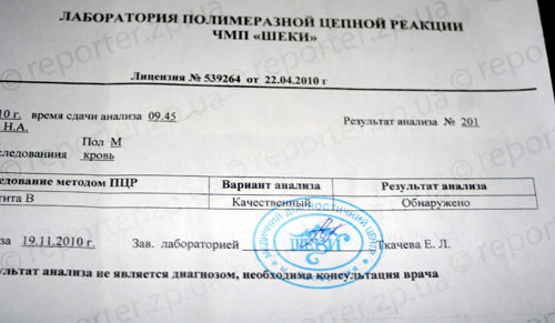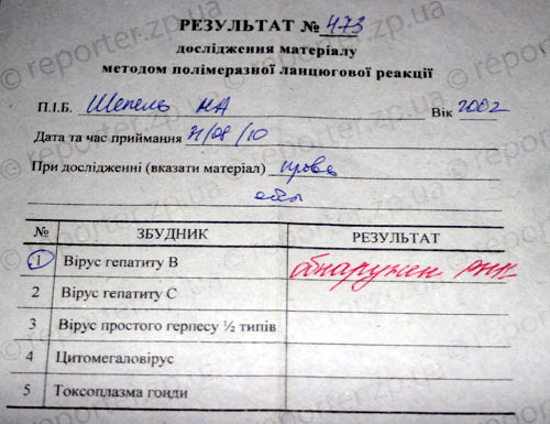 "В детской областной больнице при переливании крови Никиту заразили гепатитом В. А это грозит летальным исходом для ребенка... Никакие процедуры за стенами больницы Никита не проходил и вообще, он провел там почти полгода. Активная форма гепатита чревата при трансплантации костного мозга. Сейчас, без всех необходимых анализов мы не можем ехать в Киев. Сейчас мы ждем результаты последнего анализа, которые на днях должны прибыть из Киева", - рассказала в редакции "РепортерUA" Ирина Шепель.