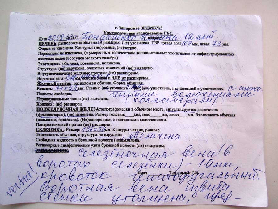 Диагноз: Кавернозная трансформация воротной вены. Внепечёночная (подпечёночная) форма портальной гипертензии.