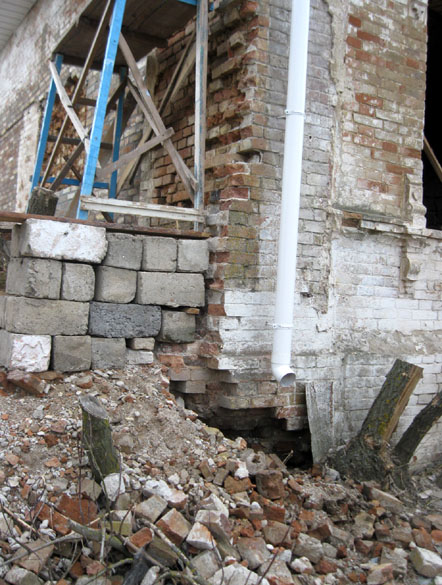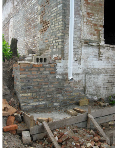 Так выглядит стена в июне 2011. Скоро её заштукатурят и украсят детскими рисунками