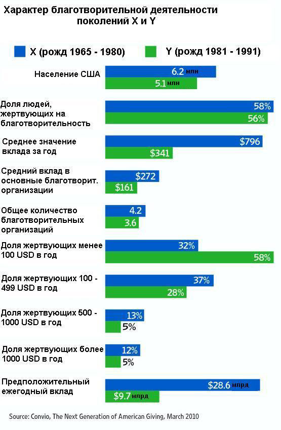 Во многих случаях представители молодого поколения сейчас сами выделяют и исследуют те благотворительные предприятия, которые они глубоко прочувствовали, и затем учат своих родителей тому, как они могут поддержать эти дела.