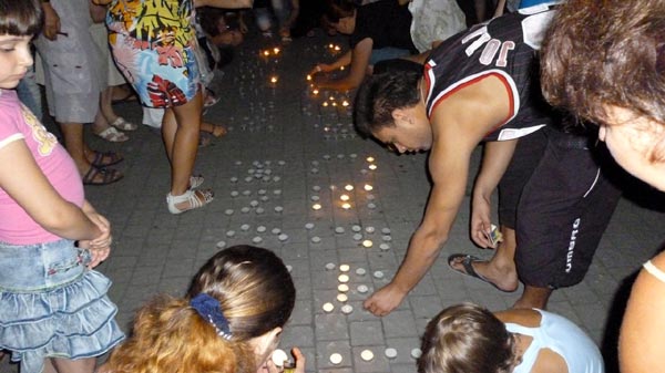 Вечером волонтёры из свечек выложили лозунг «Открой сердце – Выбери жизнь!» и каждый участник мог зажечь свечу во имя жизни наших детей.