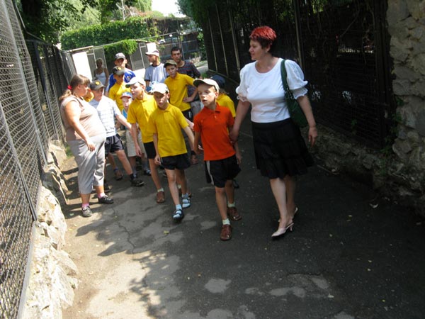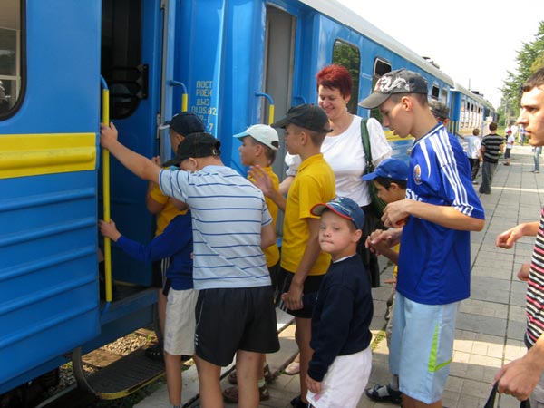 В День Независимости Украины 16 детишек Запорожского детского дома-интерната для мальчиков с нарушениями умственного развития отправились праздновать на Детскую железную дорогу (ДЖД). Этот культурно-развлекательный центр находится недалеко от вокзала "Запорожье-1" . На территории ДЖД удобно расположены зоопарк, ботанический сад, террариум, аквариум, а также находится узкоколейка, по которой проезжают маленькие вагонные составы. Каждый, кто уже побывал на ДЖД, не смог не отметить гостеприимности и доброжелательности маленьких сотрудников этого комплекса.