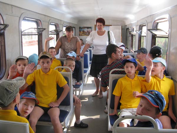 Ребята из Запорожского детского дома-интерната в сопровождении воспитателя – Строгановой Аллы Яковлевны в поезде