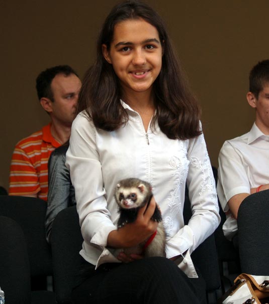 Вера Иванова и хорек Боня получили диплом участника экспедиции вместо отстутствующего четвероногого покорителя Говерлы - Ворохтинской собачки Рыжухи (наново нареченной - Говерлы).