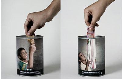 На Западе, поскольку средства собирают фонды и пожертвования имеют массовый характер, у фондов есть деньги на уличную и телевизионную рекламу. Они устраивают благотворительные шоу, имеют слово в газетах.