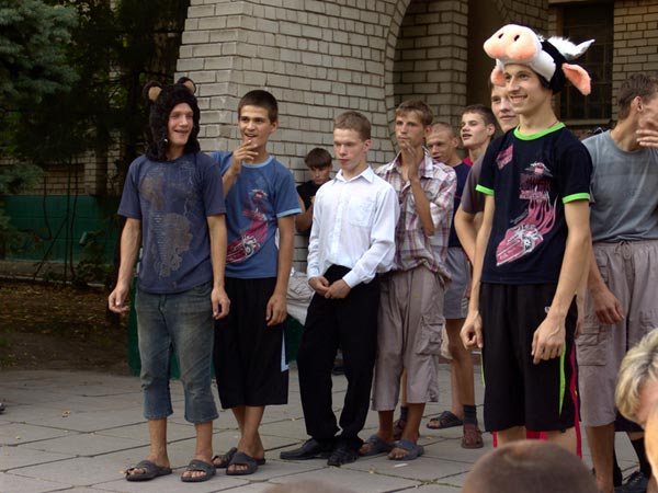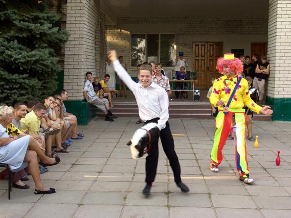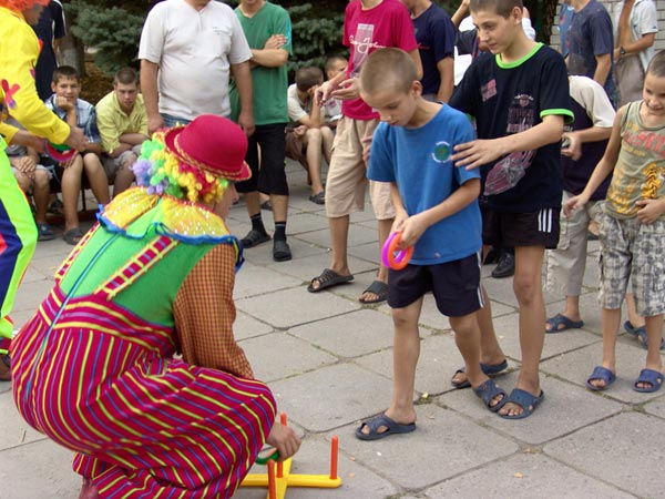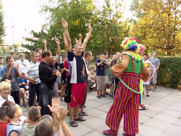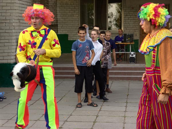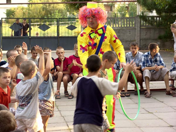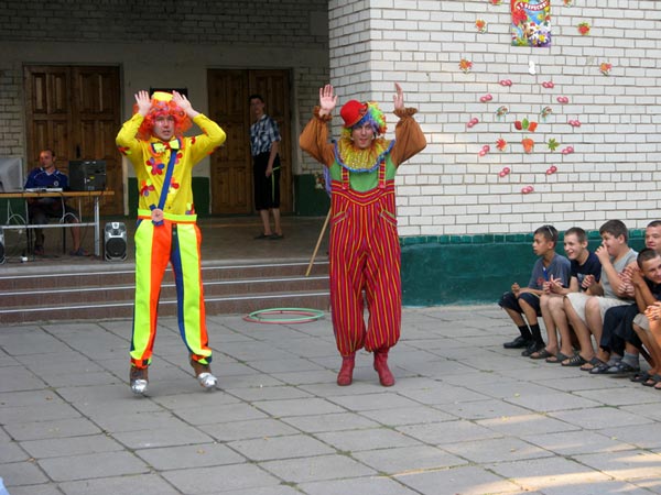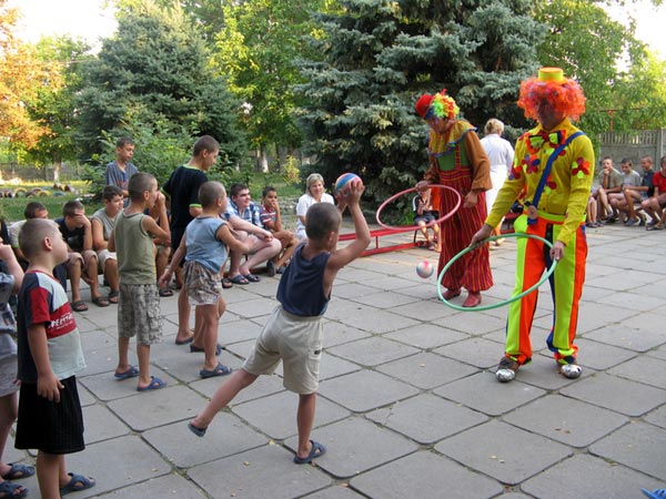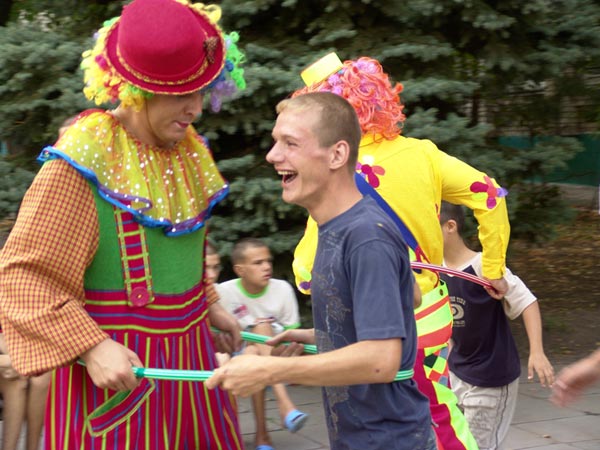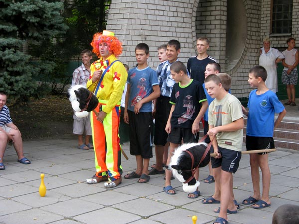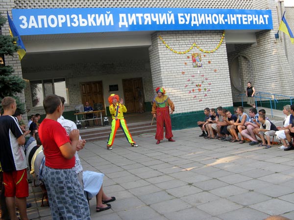 Звонкий радостный смех и море улыбок принесли с собой в Запорожский дом-интернат причудливые клоуны - Бим и Бом. С организации праздников «Казковий світ», профессиональные артисты и мастера своего творчества: Виктор Латышев и Алексей Билецкий, легко увлекли ребят своими забавными играми и добрыми шутками. Сказочно-красивые, фантазийные костюмы, добрые улыбки и интересные конкурсы непринуждённо заставляли детей веселиться и смеяться от всей души!