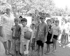 На знімку: вихованці табору у супроводі вчительки Юлії Микало прийшли на обід, а їх зустрічає практикантка Веселівського аграрного коледжу, випускниця місцевої школи Олена Баранчук