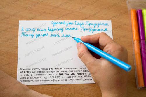 От больных запорожских деток Президент Украины получит 10 писем с просьбой помочь выжить, также 30 писем будет отправлено на имя депутатов Верховной Рады и в Посольство.