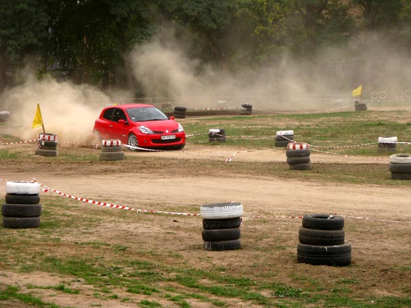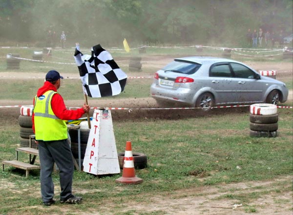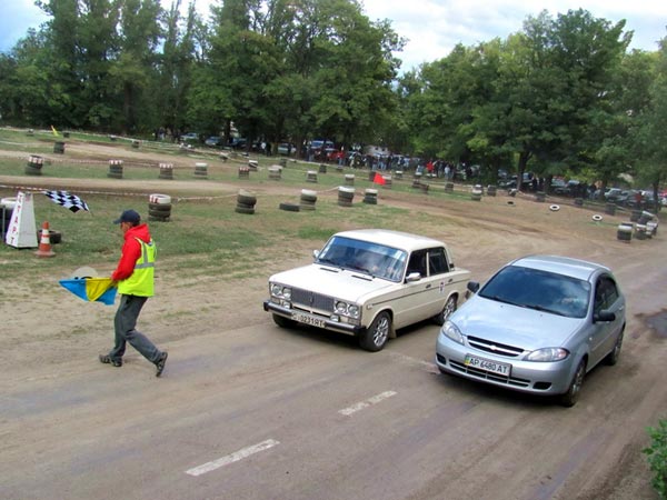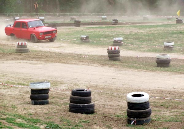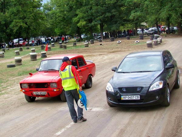Территория была размечена под две гоночные дистанции - внешний круг и внутренний, где участники стартовали парами и преодолевали дистанции на время и скорость. Машины начинали заезд одновременно, уходя на разные круги, а после первого пройденного этапа менялись направлениями.