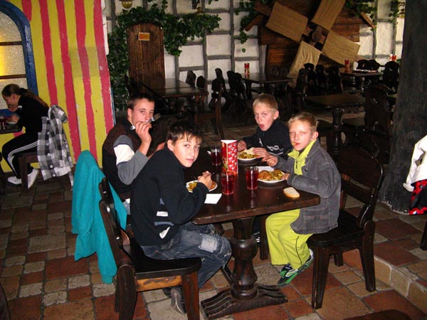Покинув театр с улыбками на лицах, ребята отправились пообедать в «Пузату Хату», где вкусно и сытно набили свои, уже пустые к тому времени, животики.