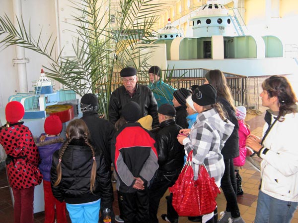 Дети прошлись по территории ДнепроГЭСА, побывали в отсеке машинного отделения и ознакомились с её внутренней структурой. Иван Степанович Секацкий поведал нашим маленьким любителям новизны увлекательную историю о проектировании, строительстве и испытаниях плотины нелёгкими временами в годы Великой Отечественной войны. Ребята узнали, что на основе гидроэлектростанции в Запорожье созданы огромные машиностроительные, металлургические и химические комплексы.