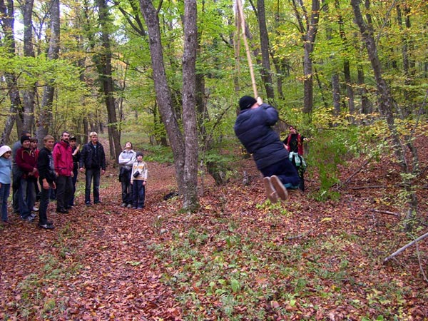 В понедельник совершили первую вылазку в лес. Для многих ребят это стало настоящим испытанием. Привыкшие к жизни в четырех стенах, они устали за первые полчаса дороги. Но быстро поняли, что нытье и жалобы ничего не изменят, да и лес уже начал потихоньку очаровывать: там ежевикой приманит, там цветочком неожиданно улыбнется, вот усталость понемножку и уходит, отступает. Настоящим подарком для мальчишек стала «тарзанка» - с дерева свисала крепкая лиана, на которой наши «казаки» лихо катались.