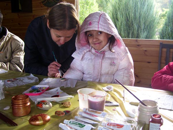 Среда, день отъезда. Утро начинается с зарядки. Антон показывает простые упражнения, дети резво повторяют. Утренний холодный ветер разгоняет остатки сна. Хозяева предлагают тем кто хочет насобирать лещины, самые проворные быстро наполняют целлофановые кулечки орехами. А Лена в это время проводит для желающих мастер-класс по рисованию на гальке. Перемазанные в краске, но счастливые, дети творят маленькие шедевры. Написав на прощание пожелания в Книге отзывов, прощаемся с радушными хозяевами. Лена и Тимур обещают пригласить нас следующей весной, как только потеплеет.