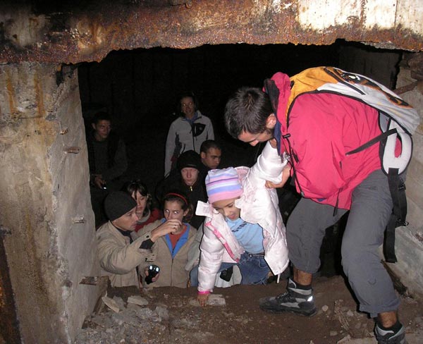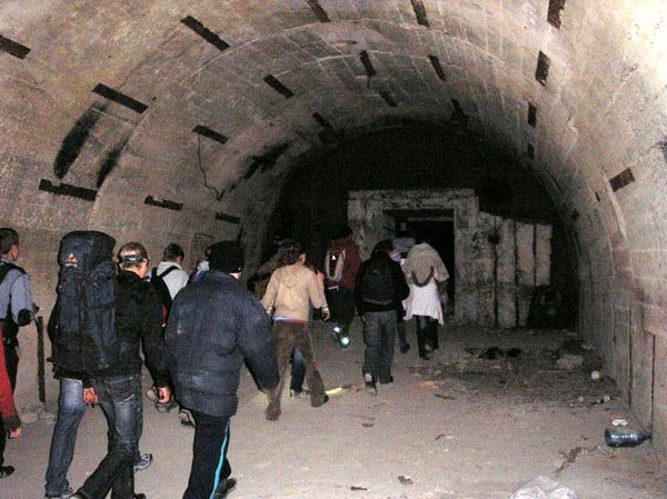 Наша группа обезопасила себя, пригласив в роли экскурсовода по бункеру опытного человека. Иван Петров с радостью согласился показать ребятишкам интересный объект – маршрут был выбран максимально легкий. К слову, одна из севастопольских турфирм водит сюда желающих за хорошие деньги. И жаждущие вкусить подземного экстрима не переводятся. Мы тоже опасностей не боимся. Держась за руки, отправляемся исследовать «Алсу». Эхо разносит голоса по туннелю. Страх ребята разгоняют шутками, но о мерах предосторожности не забывают – предупреждают друг друга об очередной яме. Наконец выходим далеко от того места, где вошли.