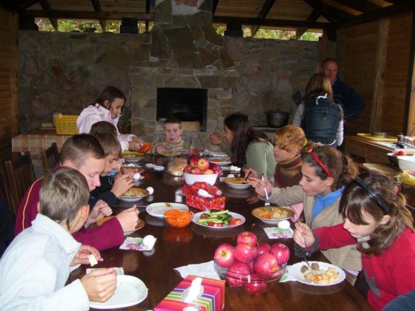 Перекусив в лесу, возвращаемся в гостевой дом, где Лена кормит нас борщом и домашними варениками. Вечером – игры и талант-шоу. Ребята показывают свои умения. Кто-то поет, кто-то танцует, стихи рассказывают, некоторые ушами шевелят – это тоже уметь надо! Не остаются в стороне и руководители – наравне с ребятами выступают. Потехе время, но усталость берет свое: разбредаемся по комнатам, завтра новый поход.