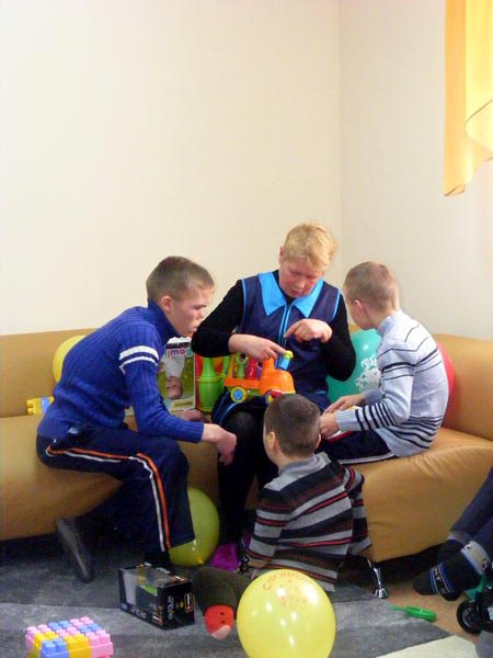 Після того як червона стрічка була урочисто перерізана, гості могли зайти у будинок, подарувати іграшки, поспілкуватись та пограти з дітьми.