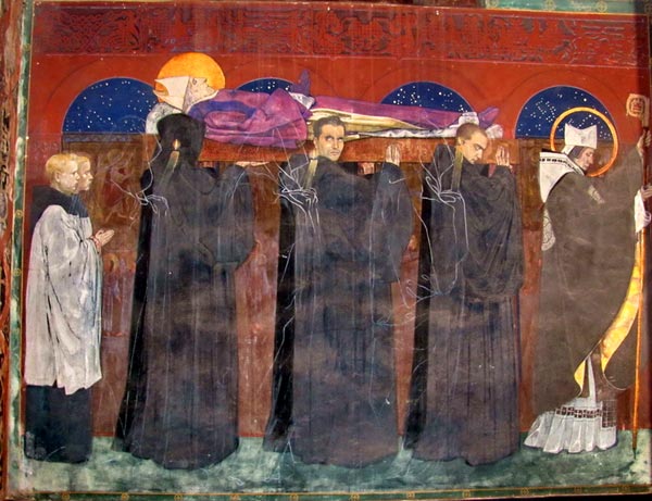 Таинственная роспись стен собора с метафизическими элементами выполненна художником Яном Розеном в начале XX века. Дрожь пробирает от этих образов. Видите призраков на картине?